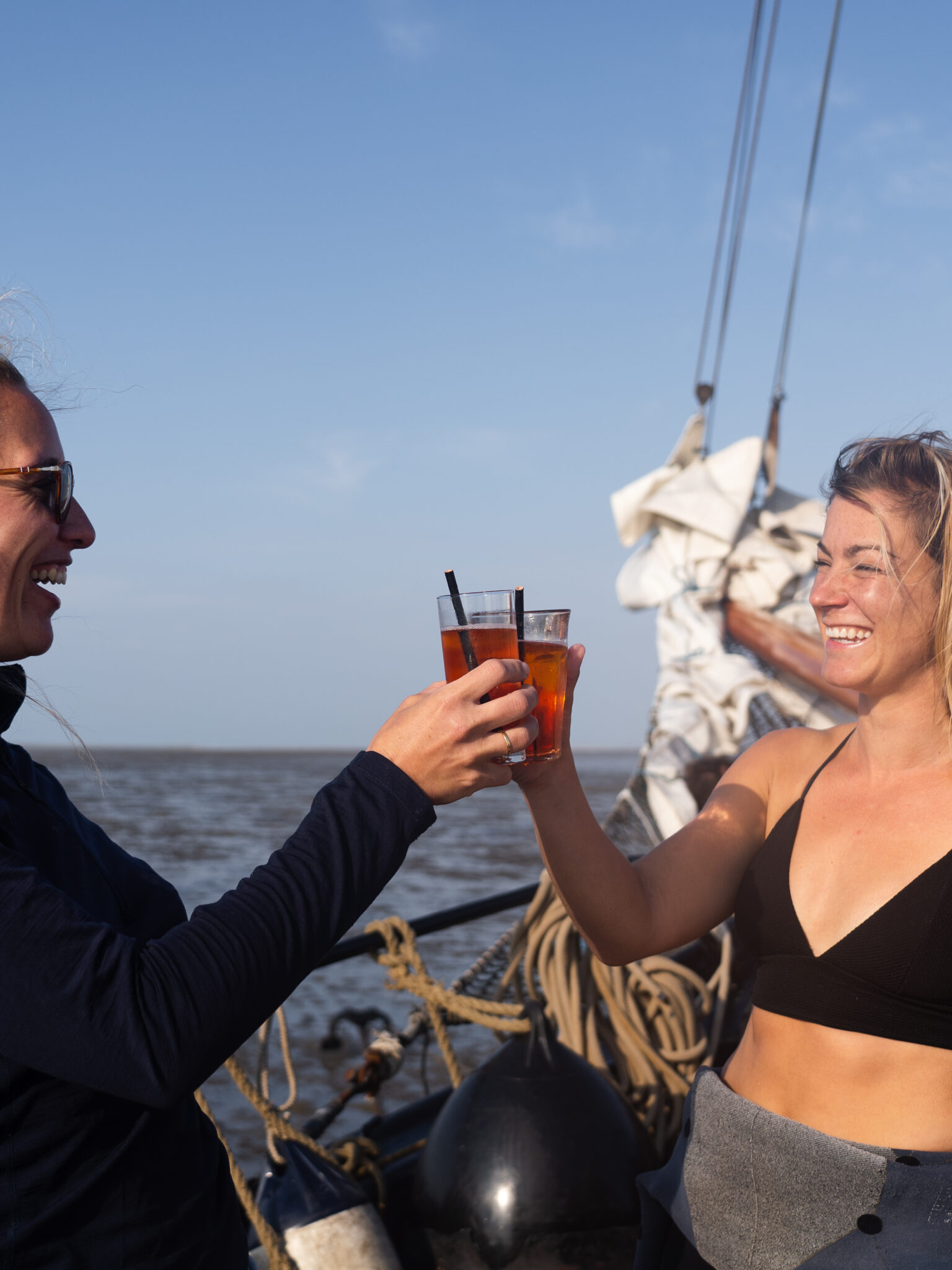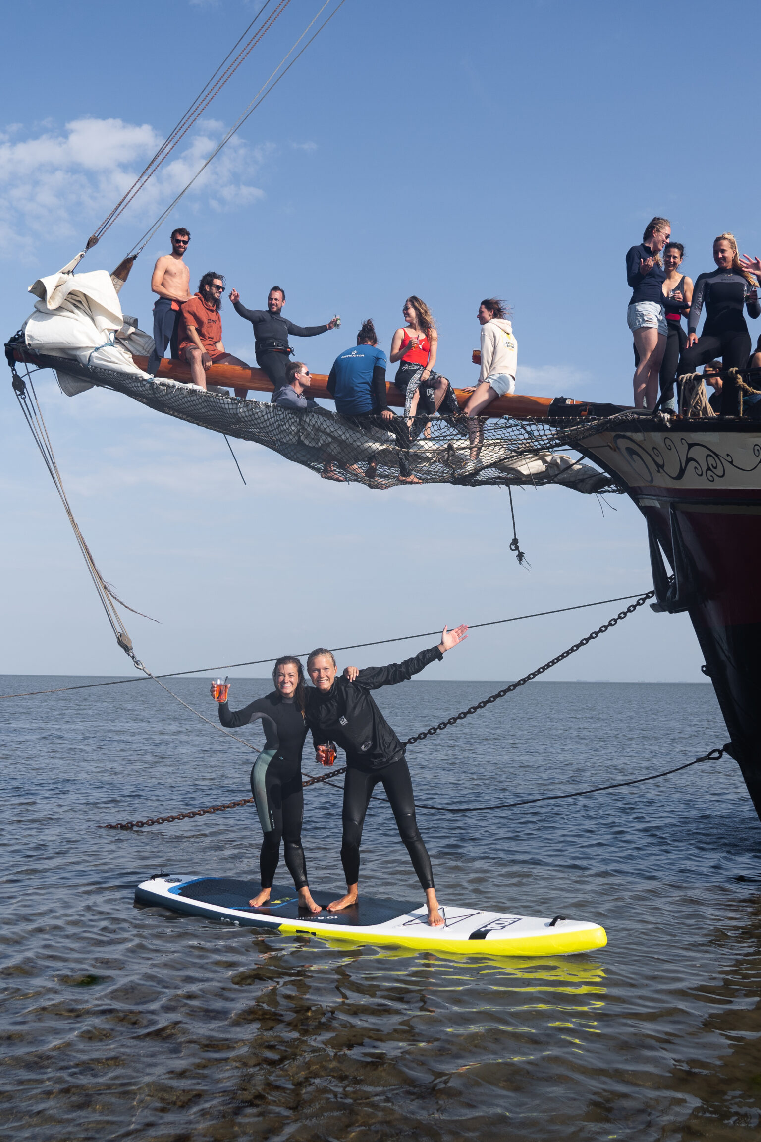 “De volgende ochtend werd ik wakker in de frisse zeelucht en nog beter; een heerlijke lucht van vers gebakken eitjes en koffie. Nadat we allemaal een stevig ontbijt hebben gehad was het tijd om onze spieren in de strijd te gooien. We mochten namelijk met de hele groep de zeilen van het schip besturen. Als we dit goed deden, zouden we op de plek van bestemming komen. Dat was in dit geval Texel. Natuurlijk kregen we hulp van de kapitein en zijn bemanningslid. Gelukkig maar, want anders zouden we ergens in Engeland zijn aangemeerd (was ook niet verkeerd geweest ;)). Gelukkig is alles goed gegaan en gingen we als beloning kitesurfen op een te gekke spot bij Texel! Na zo’n middag kitesurfen is een warme douche en lekker eten precies wat je wilt. Gelukkig werd het eten verzorgd door topchef Avi. Om de avond in te luiden werd de microfoon erbij gepakt. Ja hoor; tijd voor karaoke. Na de longen uit mijn lichaam gezongen te hebben, ging het feestje door op het dek. Met een biertje in mijn hand, onder de sterren met geweldige muziek en leuke mensen gingen we zo de nacht in.”