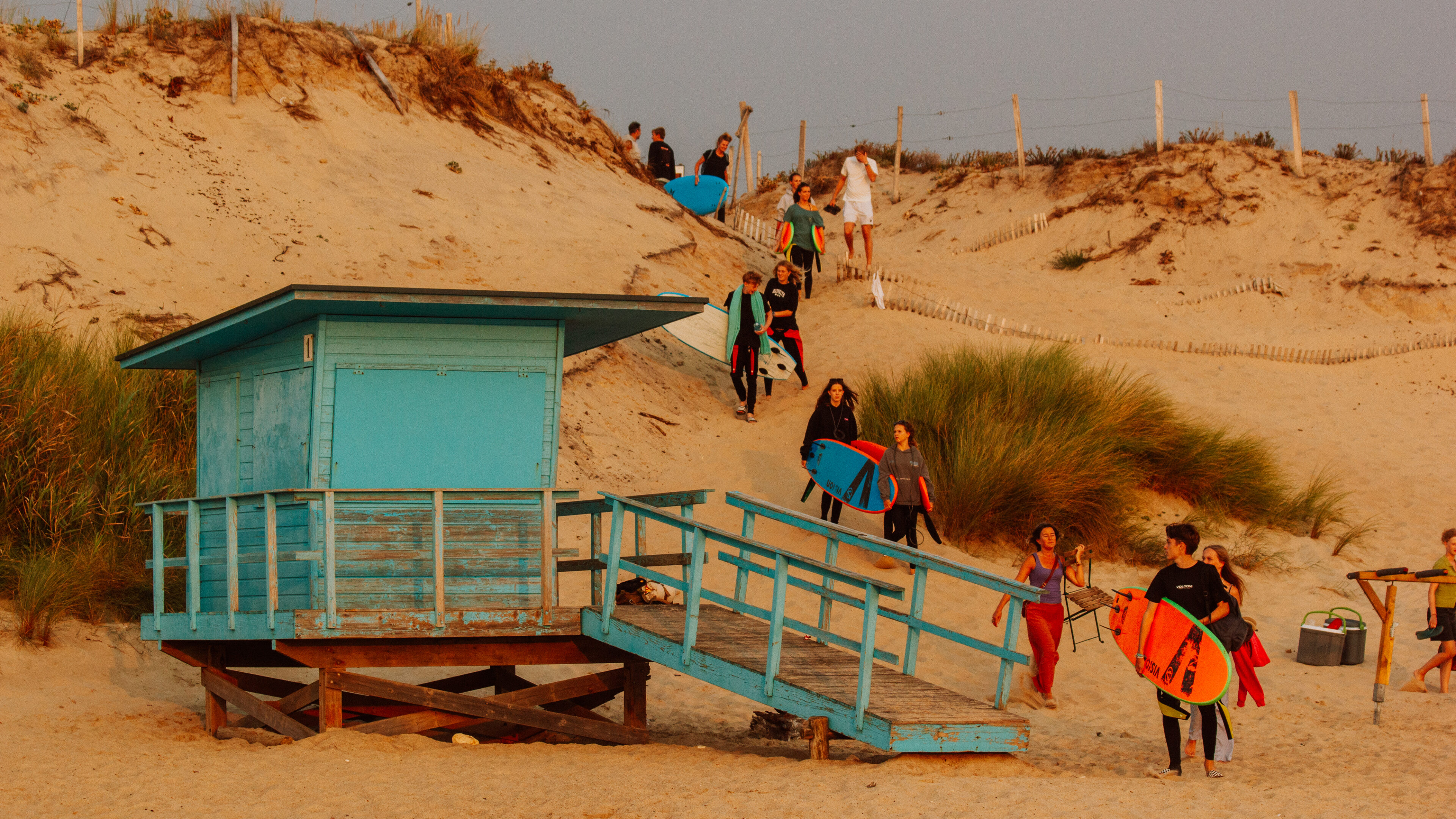 Ons surfcamp ligt net buiten Montalivet, op een fijne camping vlakbij het strand. Met moderne sanitaire voorzieningen, een skateramp, workout station, yogadek en een podium voor live muziek is er genoeg te beleven. Er zijn in Montalivet twee camps: ‘Oost’ en ‘West’. Beide bieden hetzelfde programma, maar met een eigen crew en instructeurs, zodat we het kleinschalig en persoonlijk houden. Op beide camps vind je een chill-out area met hangmatten, surf- en skimboards, een bar met koude drankjes en ijsjes, alles voor een relaxte sfeer.