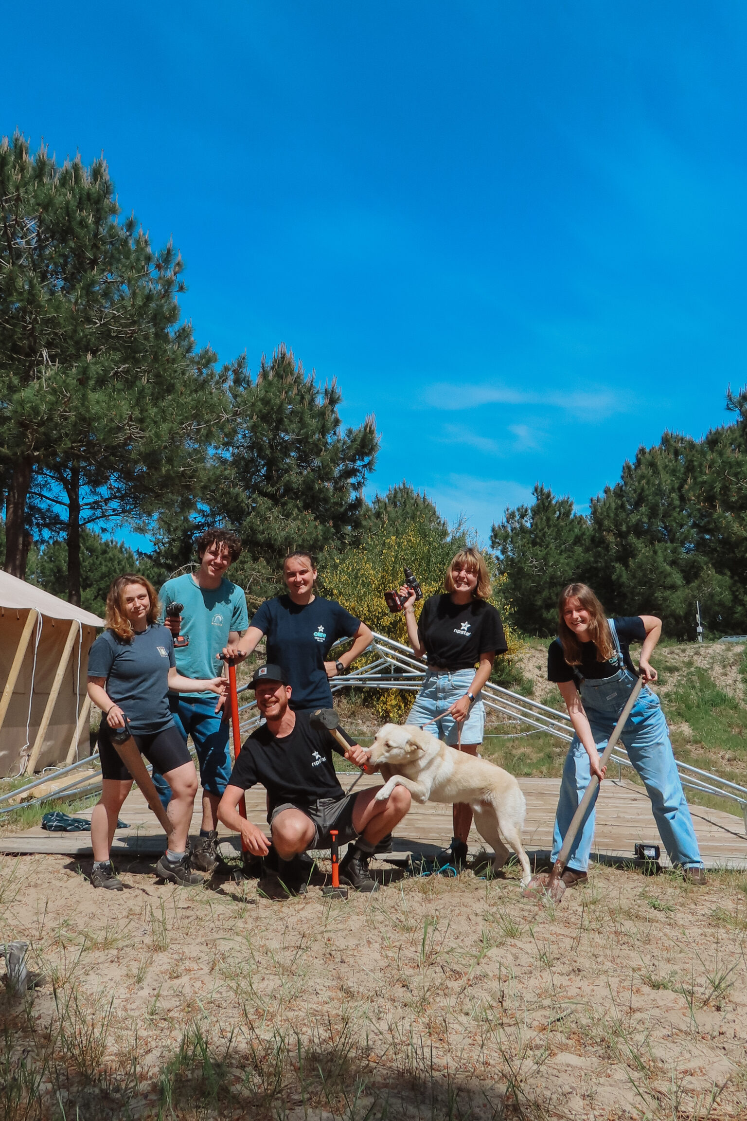 Ja, vrijwel alles gebeurt buiten. Je bouwt het camp op vanaf een lege locatie en zet het helemaal neer tot een volledig surfkamp. Er wordt dus niet in een loods of werkplaats gewerkt, maar lekker buiten in de frisse lucht, precies zoals het opbouwen van een surfcamp hoort te zijn.